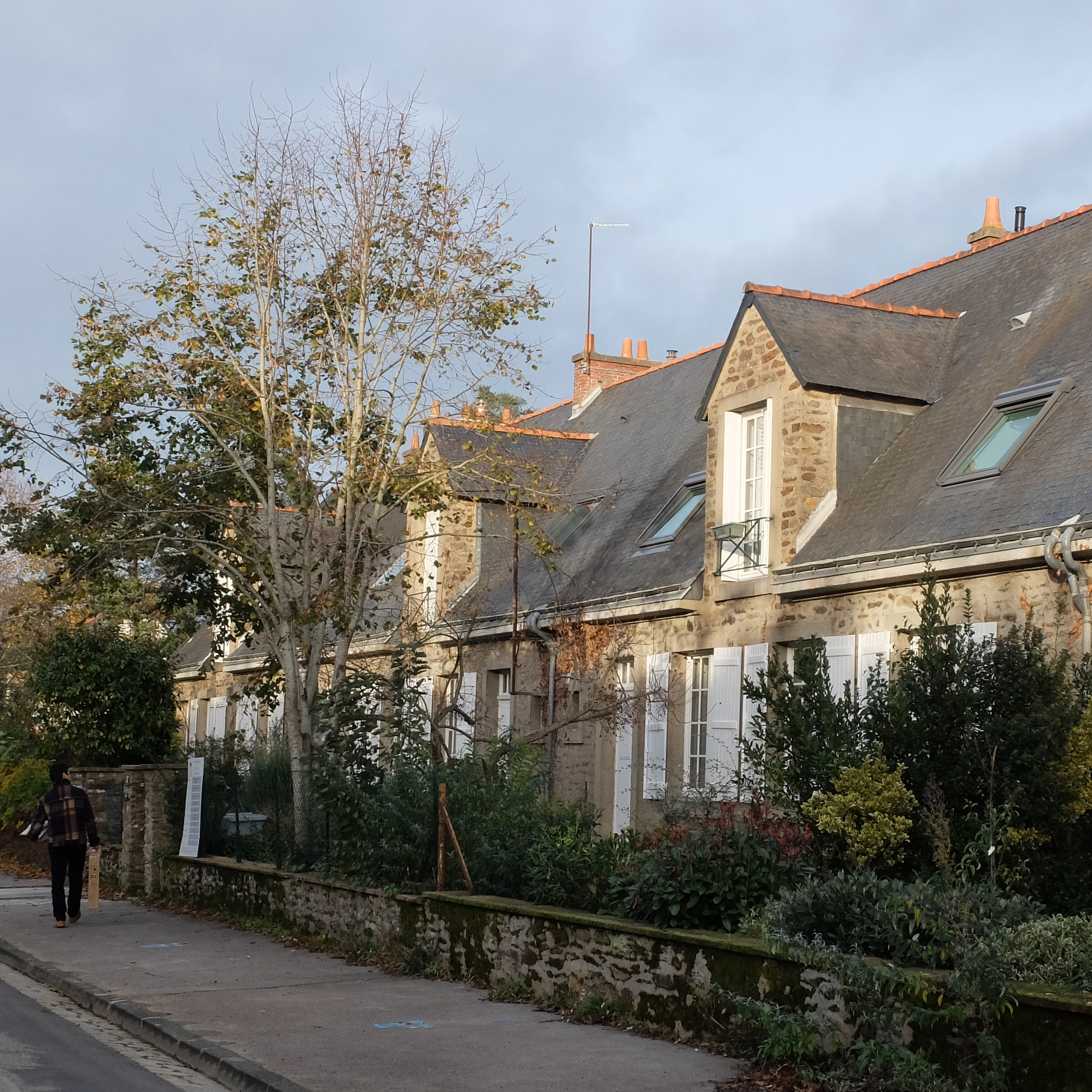 Réhabilitation d’une maison dans le quartier du Grand Clos à Nantes. Ce quartier construit pour le relogement de l’après-guerre a l’allure d’une banlieue anglaise, avec ses maison alignées, toutes identiques avec leurs façades en pierres apparentes et leurs jardins en bandes.