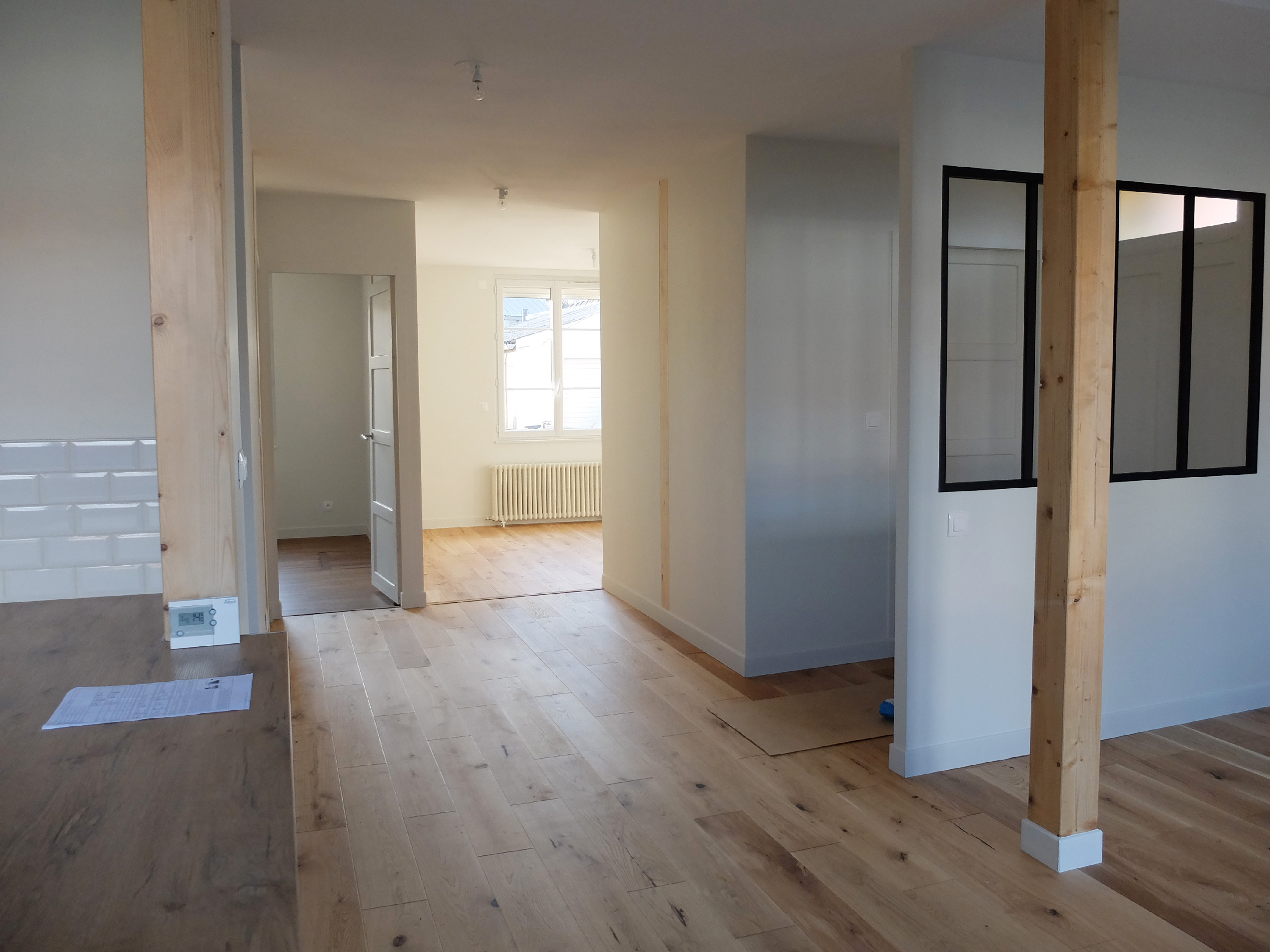 Aménagement au RDC, structure du nouveau plancher laissée visible