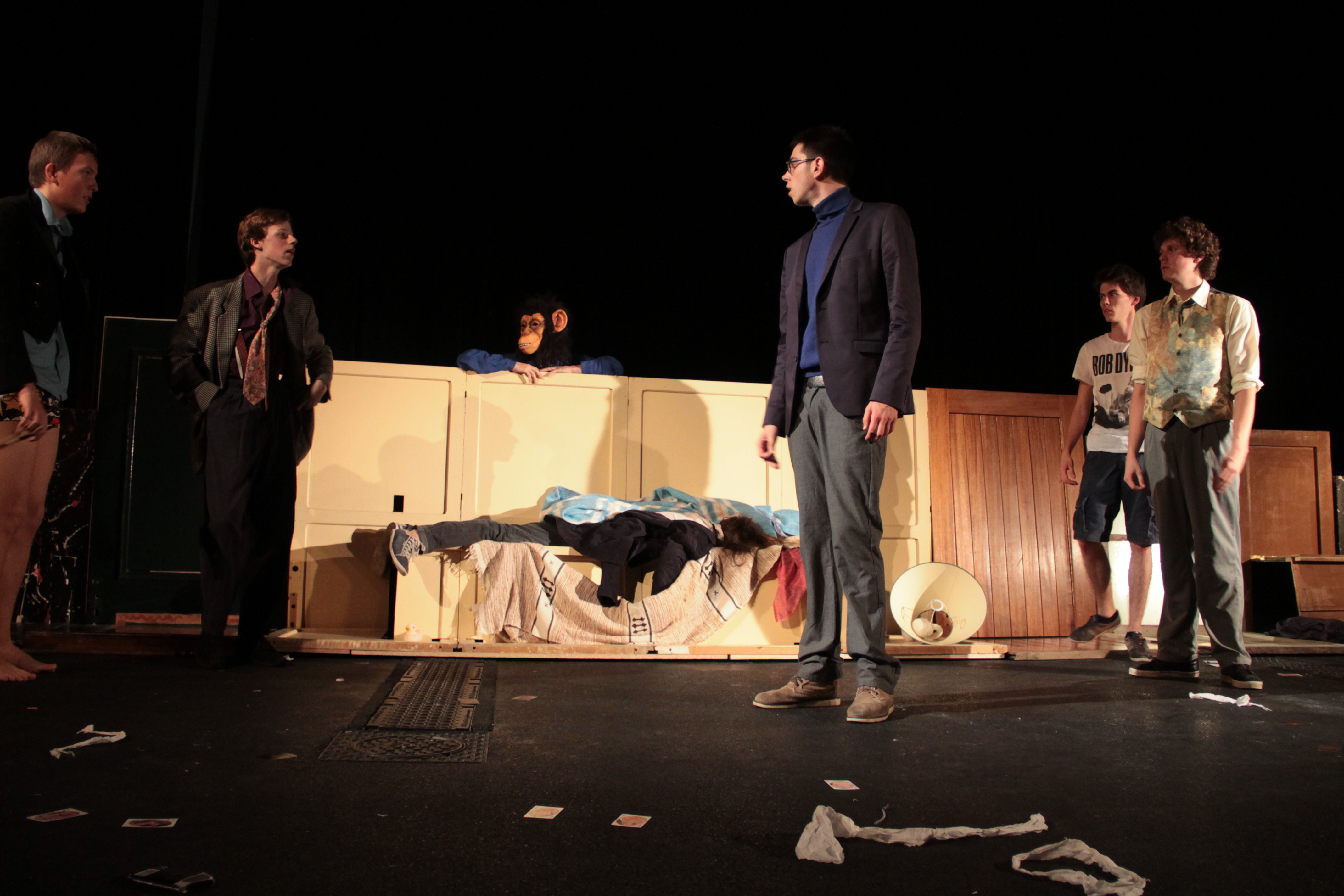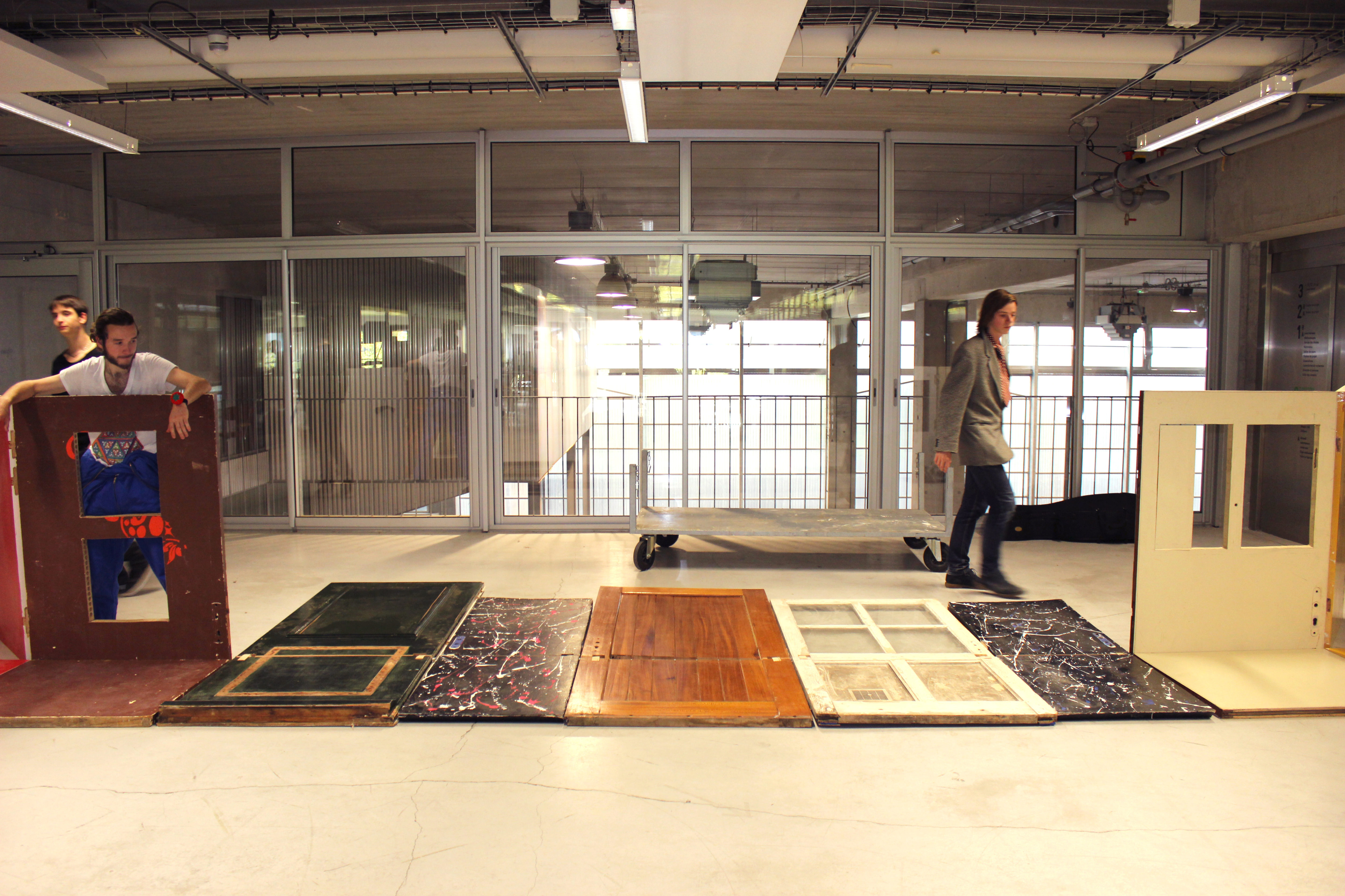 C'est le Vaudeville qui a inspiré l'utilisation d'un seul matériaux de récupération pour le décor : des portes recyclées. Elles viennent se plier en deux pour créer un fond de scène aux multiples entrées / assises / fenêtres.